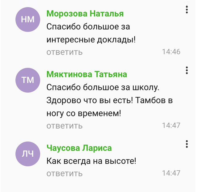 Спасибо большое за Школу. Здорово что вы есть! Тамбов в ногу со временем!