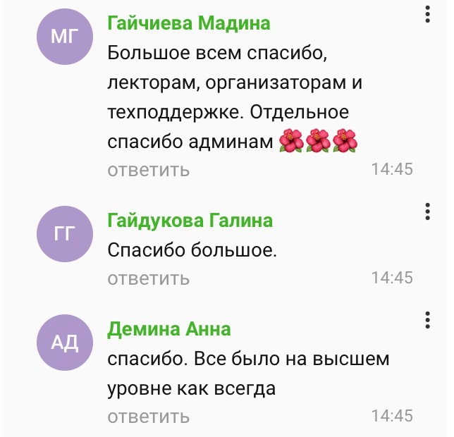 Большое всем спасибо, лекторам, организаторам и техподдержке. Отдельное спасибо админам.